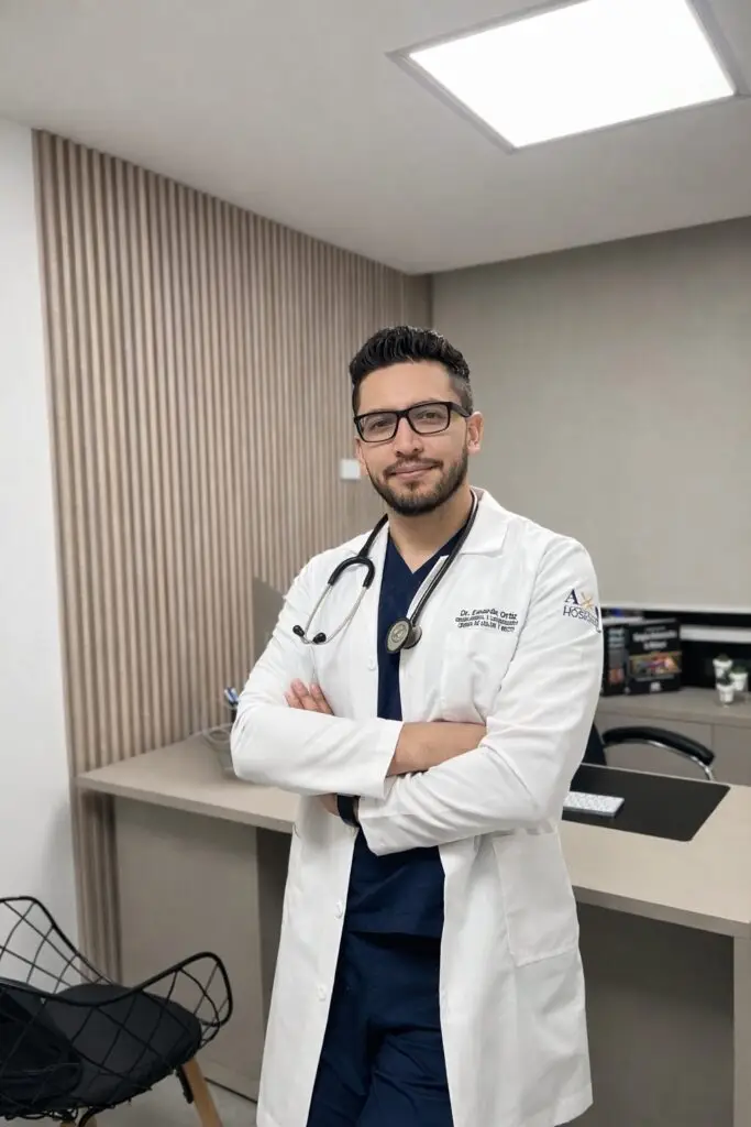 El Dr. Eduardo Ortiz es coloproctólogo en Quito, con formación en cirugía general y laparoscópica.